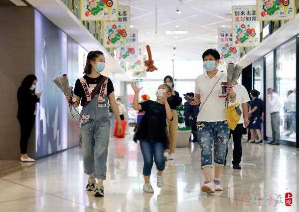 上午十时,浦东陆家嘴商业地标第一八佰伴开门迎客,商城管理层为等候在此的顾客献上玫瑰花和端午节小礼物,传达“别来无恙・美好如常”祝福。商场全面恢复营业首日,恰逢儿童节,百联旗下各大商城女性消费者云集,化妆品热销;“大手牵小手”带动下,儿童服饰和玩具也喜提热销,成为疫后重开最大特点。