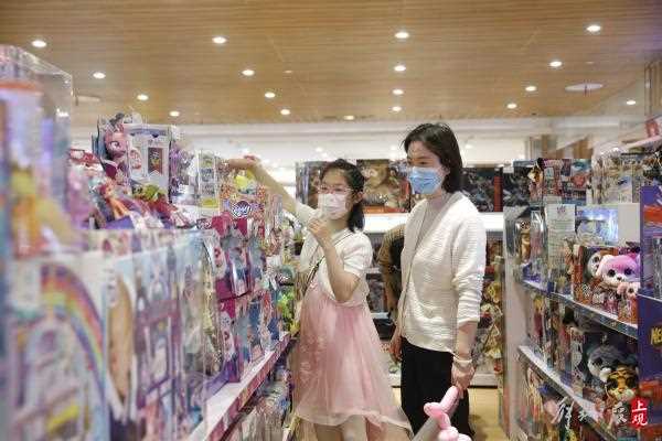 恰逢儿童节,大商场也是“亲子游”热门目的地。第一八佰伴八楼成为儿童乐园,儿童服饰和玩具全天热销。