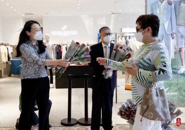 为感谢顾客光临,第一八佰伴商场为他们准备了玫瑰花和端午小礼物。