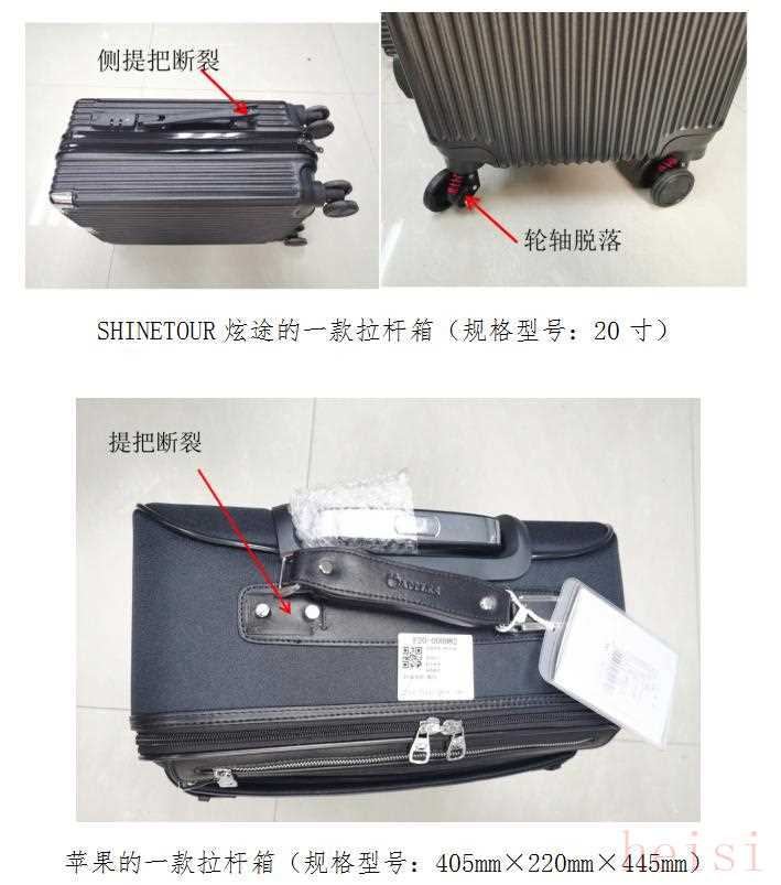 经检验,有9个品牌样品的测试结果表现不佳、不结实,主要体现在振荡冲击、行走性能、拉杆耐疲劳性能、跌落性能等4个方面,在标准测试下出现不同程度损坏、开裂等情况,其中唯加、LEONARDO、SHINETOUR炫途3个品牌样品有两个方面性能均表现欠佳。CISSTEG品牌产品耐疲劳性能不符合要求,HONGU、袋鼠、唯加、名将、LEONARDO、SHINETOUR炫途、苹果、璐璐凯帝等8个品牌样品振荡冲击性能较差,其中唯加品牌样品在拉杆耐疲劳性能方面、LEONARDO样品在耐冲击性能方面、SHINETOUR炫途样品在行走性能方面也都不达标。