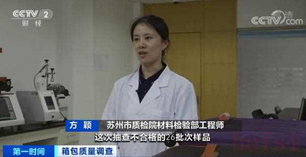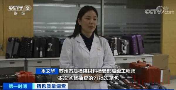 苏州市质检院材料检验部高级工程师 季文华:本次监督抽查的91批次箱包,生产企业抽样2批次,实体店抽样57批次,电商平台抽样32批次。样品覆盖了当前的主流产品、消费者主要的购买渠道和主要品牌。