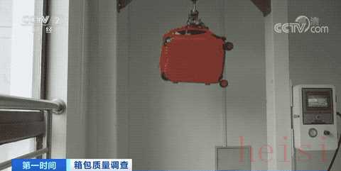 苏州市质检院材料检验部工程师 张猛:这是模拟消费者日常在箱体中放置一定的负重物之后,它的拎放,包括上下楼梯冲击的过程。根据标准要求,对样品施加标准规定的负重之后,进行连续不断振荡冲击试验。标准规定,软箱提把测试400次,侧提把测试300次,硬箱提把和侧提把各测试300次,测试完以后,它的提把跟侧提把,不能出现断裂,箱面不能出现变形、凹陷或者是撕裂等情况。