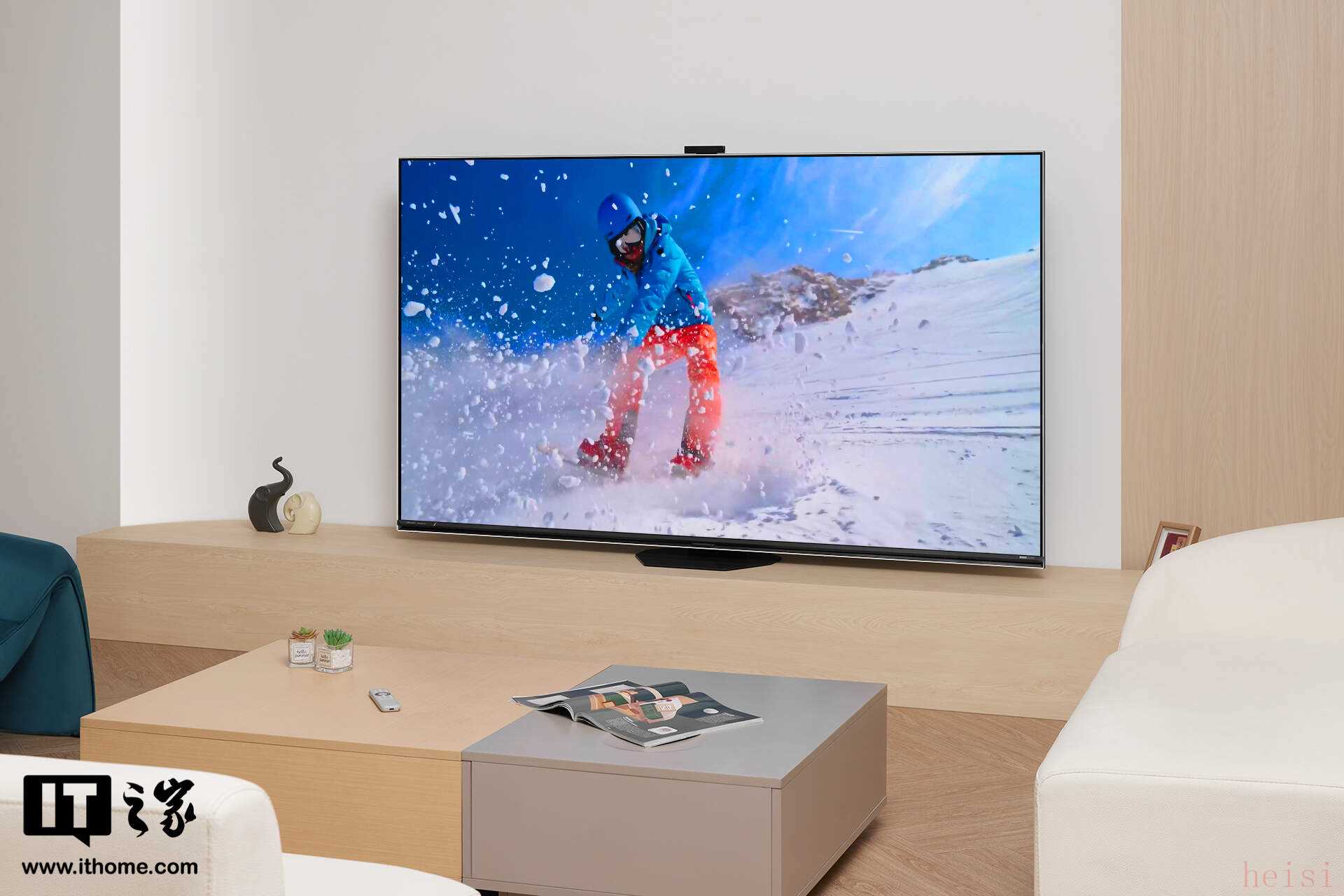 此次IT之家测试的 85 英寸版本,机身厚度仅为 46mm,这种“超薄体态”彻底打破了传统大屏电视的厚重感,使其能够实现“真空式贴墙”的挂装效果。