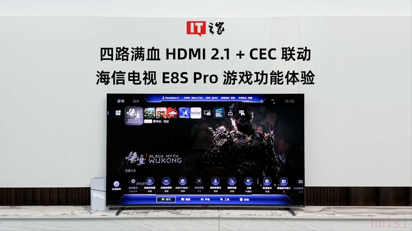 和影游旗舰 E8S Pro 一样,海信 U7S Pro 接入 PS5 等游戏主机后,会秒级识别出主机型号,并自动切换到游戏模式。妙控台内提供了标准、FPS、RPG 等多种预设模式,参数也可自定义调节。
