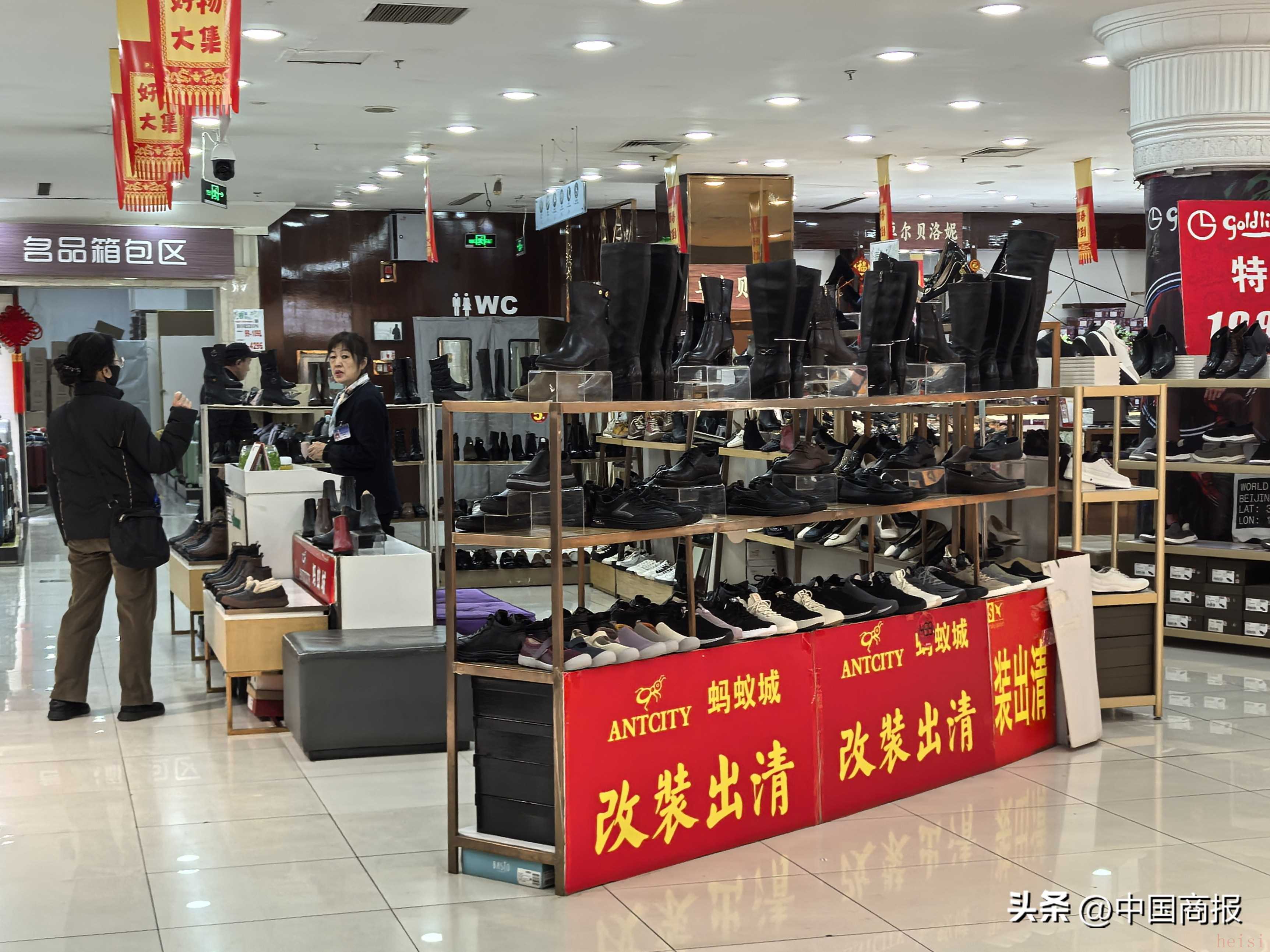 商场内部分店铺挂起“改装出清”的标识。如今的蓝岛大厦,在装潢上看起来已经有些“岁月的痕迹”。不仅如此,进驻该商场的服饰品牌,也以雪莲羊绒、红都皮衣等“老牌子”居多,这些品牌在京城的其他商场中已经很少见。