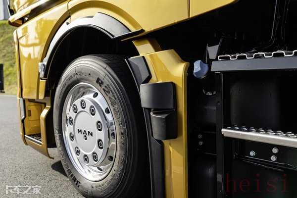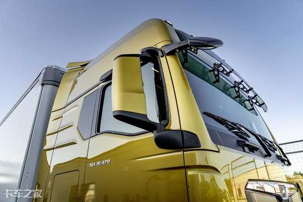 不仅仅是中网两侧带有时下欧洲卡车主流的扰流槽款式设计,而且从其下端一直延伸到驾驶室车门位置同样带有这一低风阻部件。