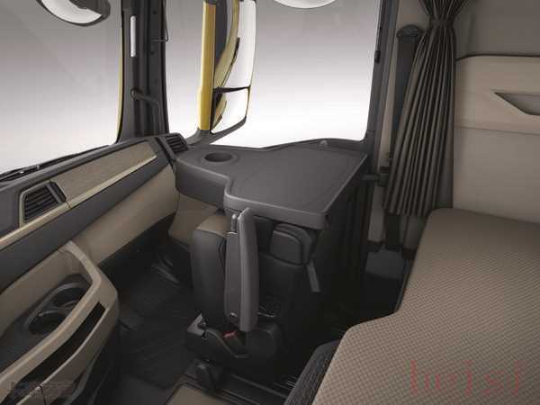 位于方向盘下方右侧位置的液力缓速器控制系统以及AMT挡位操作方式与新一代斯堪尼亚车型极为相似。原有固定在主驾驶座椅侧方位置的换挡集成转移至中控台中部位置,其采用升级改进的旋钮式开关设计极大提高驾驶员换档操控性。