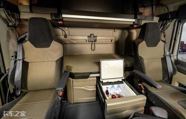 TGX使用的GX系列驾驶室其室内有效容纳空间进一步提升,分体式储物格可以提供总容积350L的储物空间,进一步迎合干线物流运输司机的实际需要。
