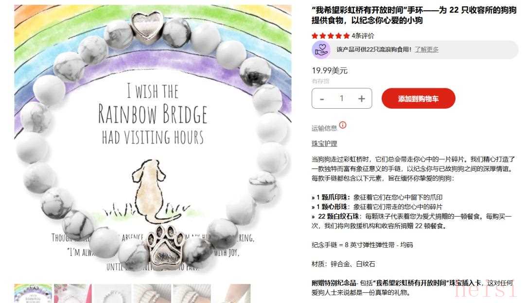 就连看似冷门的宠物情感周边赛道,也暗藏商机。iHeartDogs的第一款产品是一条串珠手链,由22颗珠子组成,代表狗狗曾陪伴在你身边的那些美好、快乐的时光,并且承诺每售出一款手链,就会为流浪猫狗提供10顿餐食,这样的营销方式让品牌快速出圈,该产品也毫无疑问的成为了该品牌的王牌爆款。