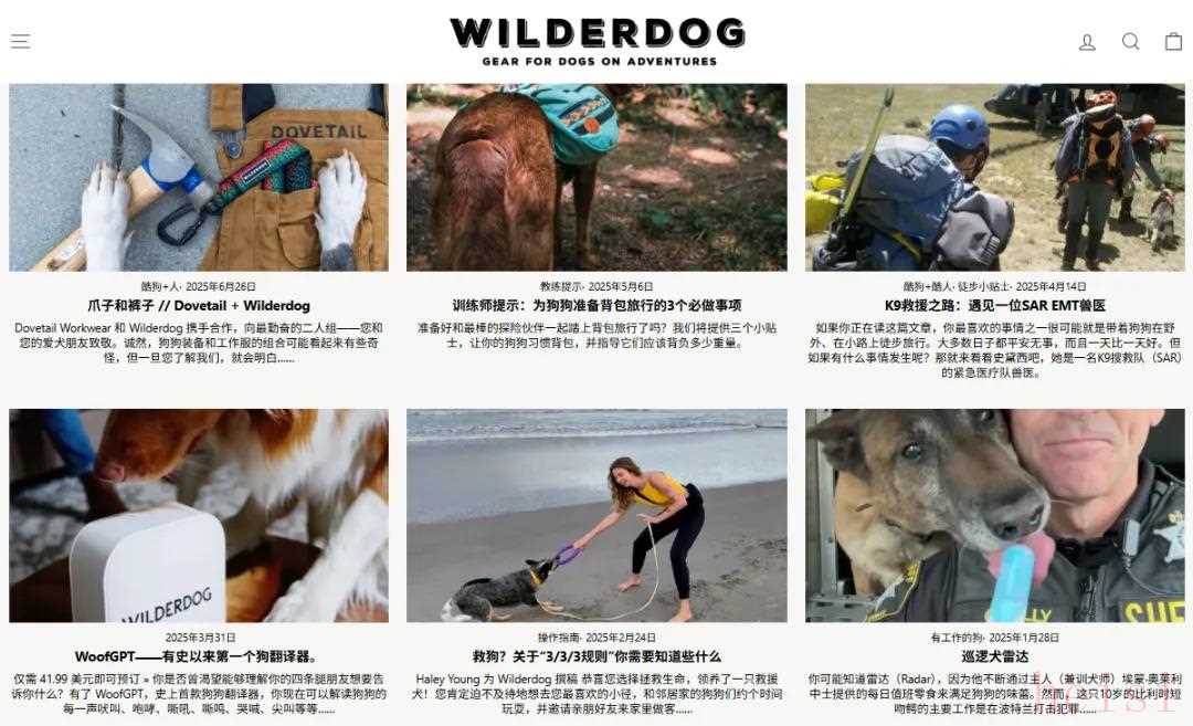 官网博客不卖货,专注输出硬核干货:狗狗救援知识、训练技巧、徒步路线推荐、携宠户外体验。这些内容无声地树立了“既懂户外更懂狗”的专家人设,赢得用户深度信任。