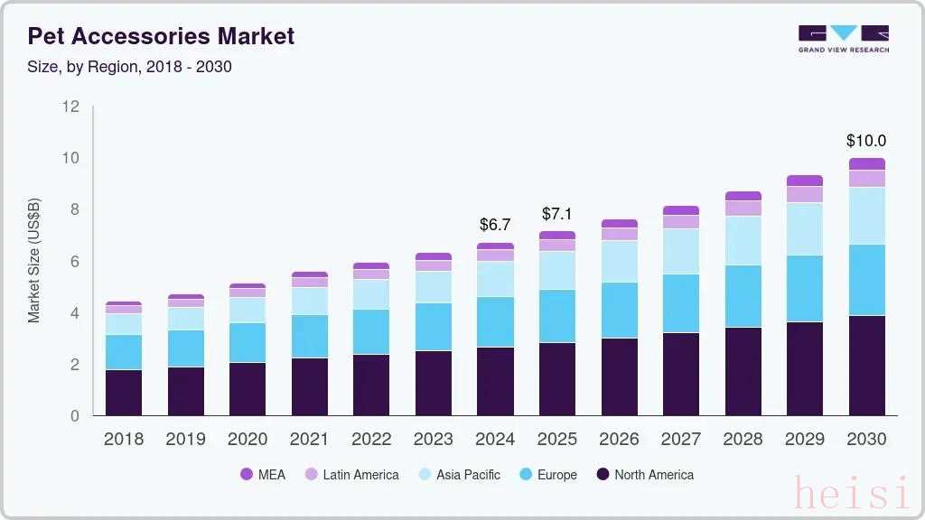 GRAND VIEW RESEARCH数据显示,2024年全球宠物配件市场规模估计为67.1亿美元,预计到2030年将达到99.7亿美元,2025年至2030年的复合年增长率为6.9%。