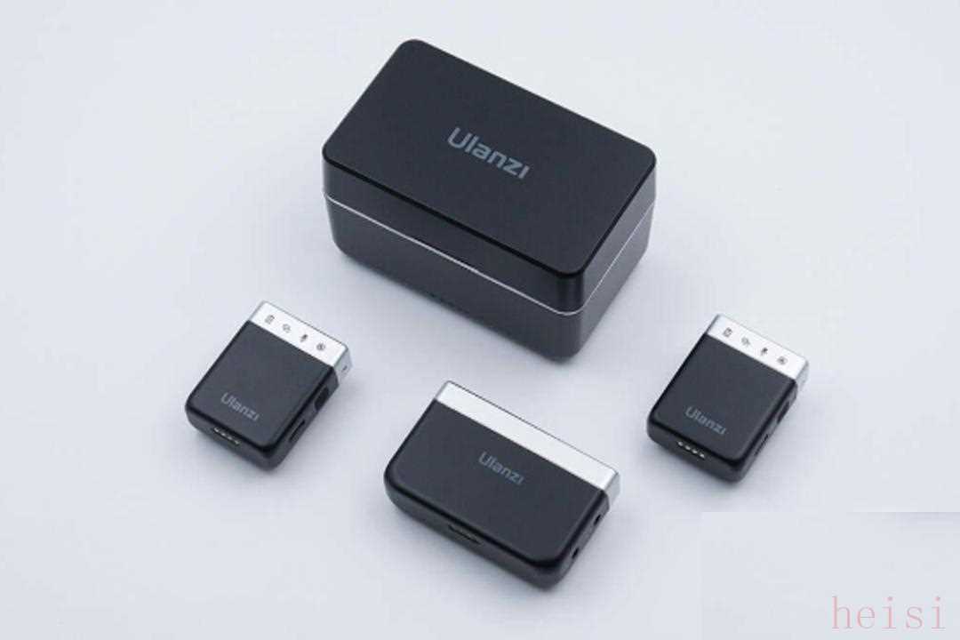 Ulanzi优篮子AM18无线领夹麦克风在外观方面,整体为比较硬朗的方形设计。麦克风体积小巧,黑银配色,磨砂工艺处理,拥有着不错的质感。发射器设计有领夹,便于佩戴使用;接收器设计有冷靴结构,方便与相机安装固定。还配备有充电盒,提供便捷收纳和户外移动充电。
