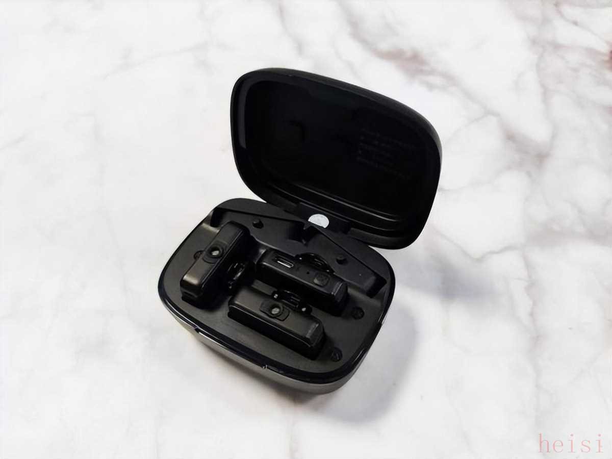 在外观方面,麦克风体积小巧轻盈,接收器采用直插式设计,无需繁琐的线缆连接,即插即用,使用便捷。发射器则配备了领夹,使用佩戴方便。另外还配备有充电盒可供用户选购,进而提升户外使用的便携性。