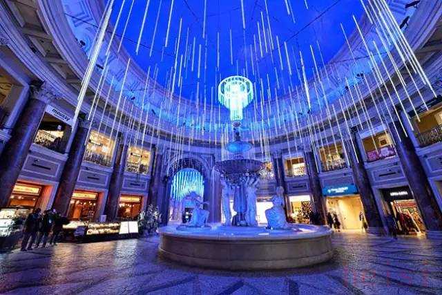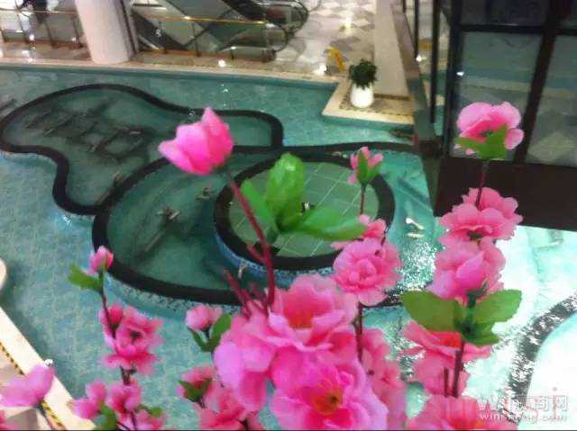 商场每季主题均有所不同,本季以“梅花”为主题,将梅花融入到整个商场的陈设当中。梅花作为南京市花本就容易获得南京市民的喜爱,又契合早春梅花绽放的外在环境。粉红的梅花与蓝绿的池水交相辉映,作为女性在这么浪漫的环境下逛街想来是十分愉悦的。