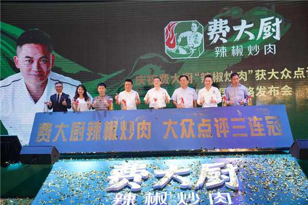 2020年费大厨辣椒炒肉再次登顶大众点评必吃榜,霸气实现必吃菜“辣椒炒肉”三连冠。为庆祝费大厨连续三年(2018、2019、2020)荣获大众点评长沙必吃菜辣椒炒肉第一名,8月17日费大厨辣椒炒肉在长沙历史文化地标橘子洲头召开发布会。