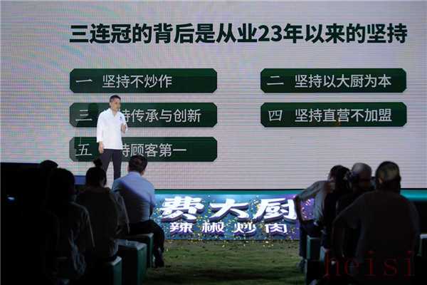 费大厨创始人费良慧表示对湘菜品质的“五大不懈坚持”是费大厨获得必吃菜辣椒炒肉三连冠荣誉的根本原因,即:坚持不炒作、坚持大厨体系、坚持传承与创新、坚持直营不加盟、坚持顾客至上。