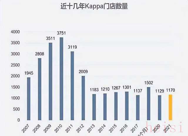 到2010年,Kappa达到鼎盛,门店数量达3751家,年销售额42.6亿元。