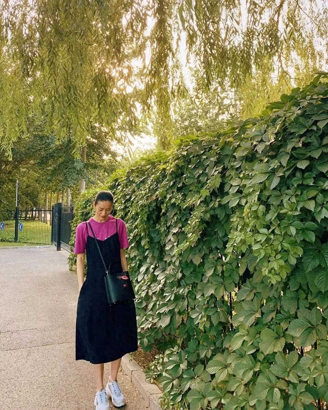 它就是水桶包!刘雯最近就背了一只,搭配了T恤和吊带裙,看起来舒适又时髦~