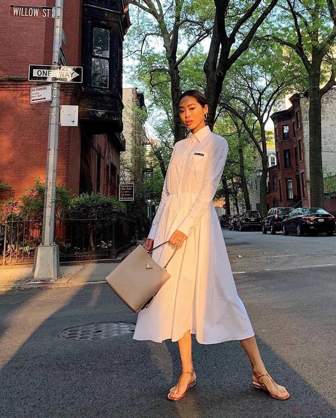 除了黑红两款,还有我喜欢的奶茶色,搭配白色衬衫裙,超有气质的~