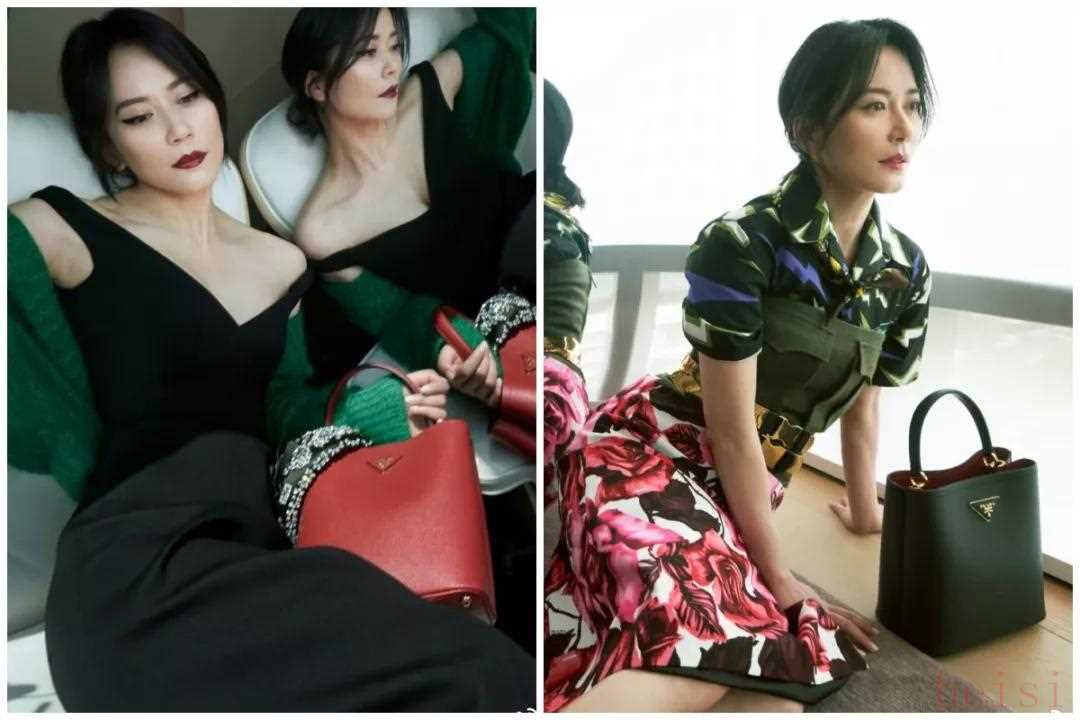 这款包我是被俞飞鸿种草的。看她平时的照片,一般都是知性优雅的风格,但这组Prada Panier的大片也太性感啦!