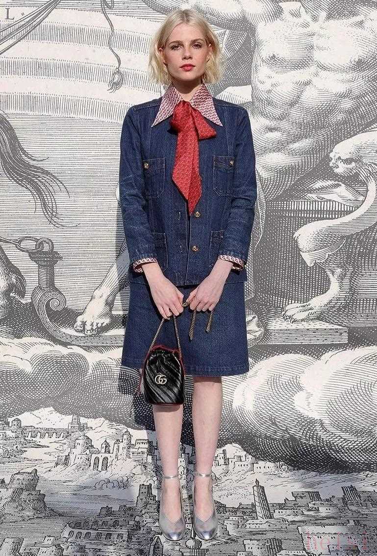 演员Lucy Boynton这样随意地手提着,当个派对包也不错~