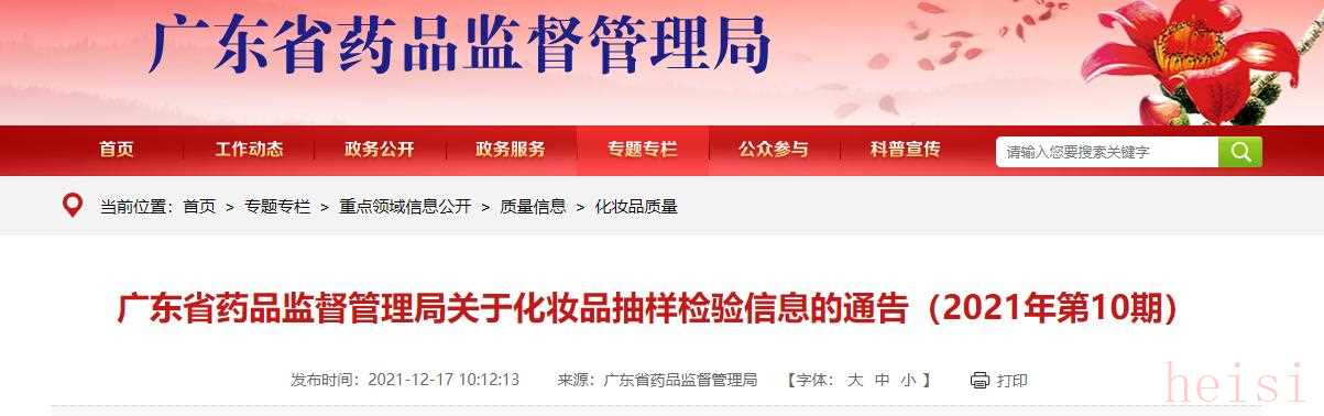 中国质量新闻网讯 2021年12月17日,广东省药品监督管理局网站发布关于化妆品抽样检验信息的通告(2021年第10期)。本期涉及广东省597批次化妆品的抽样检验信息,经检验合格样品589批次,不合格样品8批次。