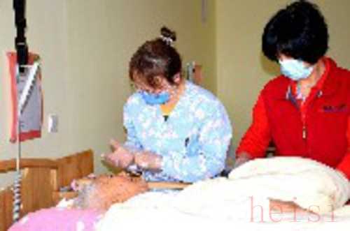 蕾娜范(烟台)颐养院配套机构的护理院工作人员在为老人做“卧床翻身”。