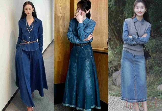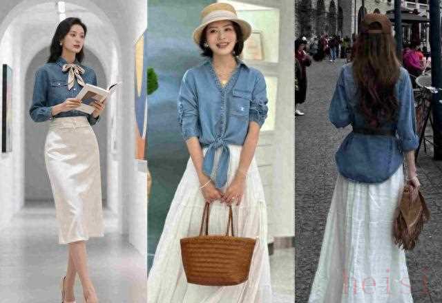 "搭配方式:" 牛仔衬衫 + 半身裙(牛仔裙、百褶裙、A字裙、皮裙等)