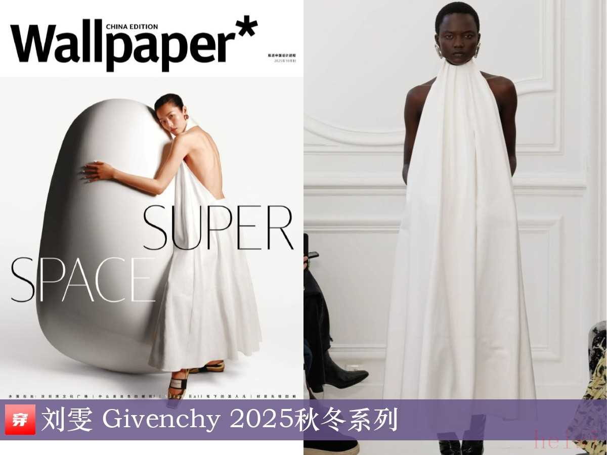 刘雯,《Wallpaper*》2025年10月刊。白色挂脖连衣裙:Givenchy 2025秋冬系列。