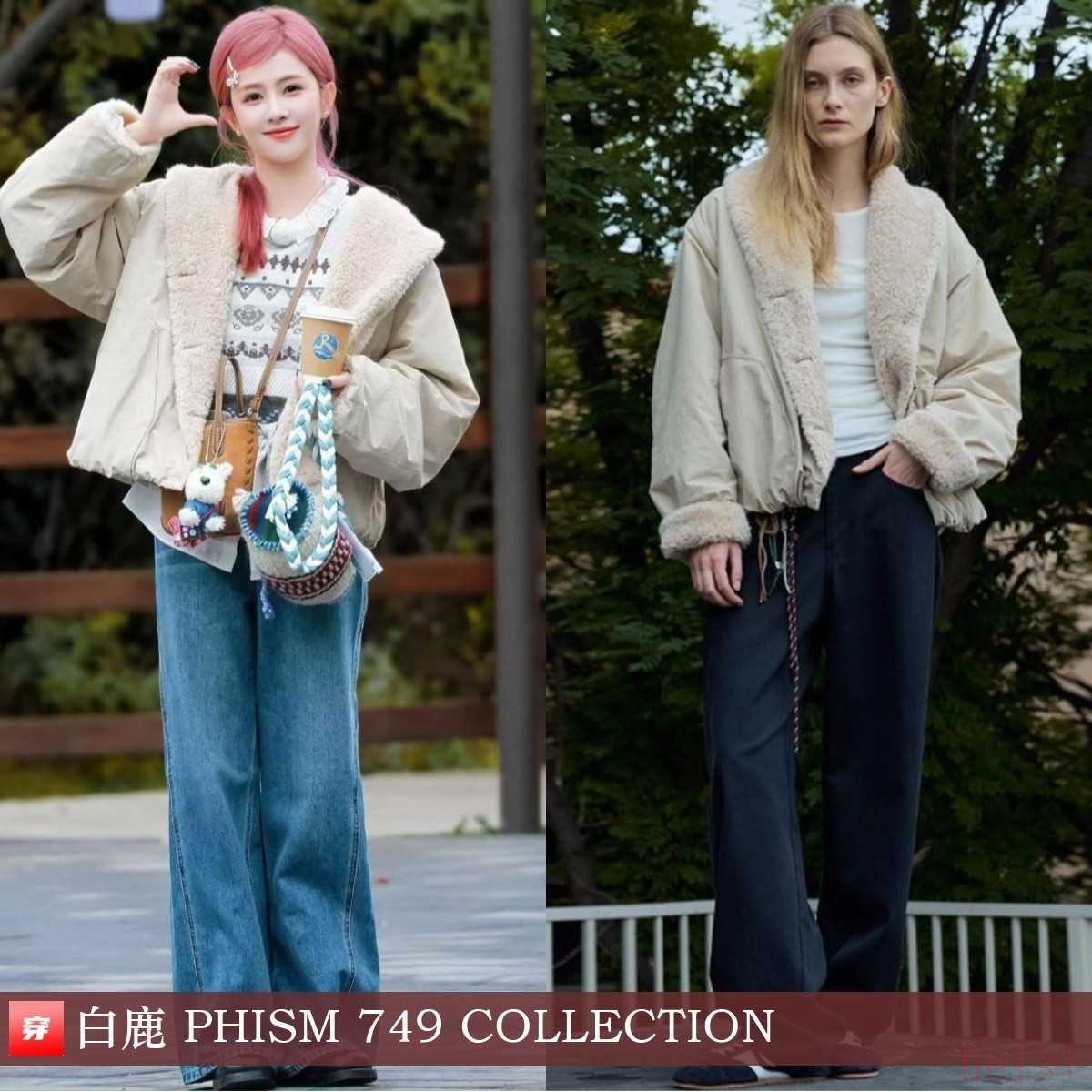 白鹿,《奔跑吧》录制。卡其色翻领毛毛外套:PHISM 749 COLLECTION。
