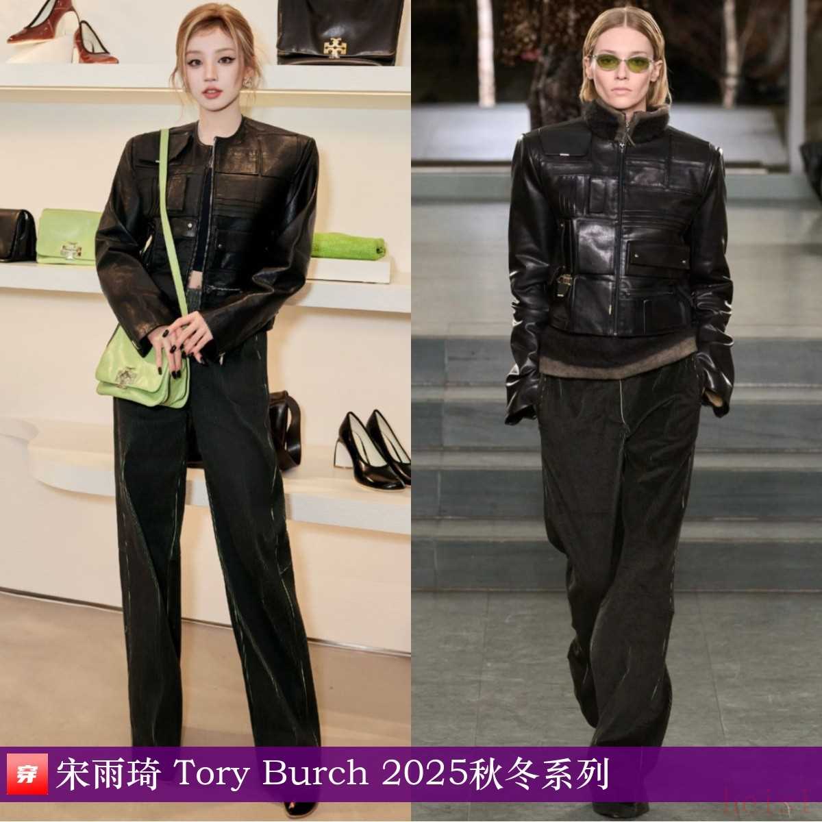 宋雨琦,品牌新店开业活动。黑色皮夹克、阔腿裤:Tory Burch 2025秋冬系列。