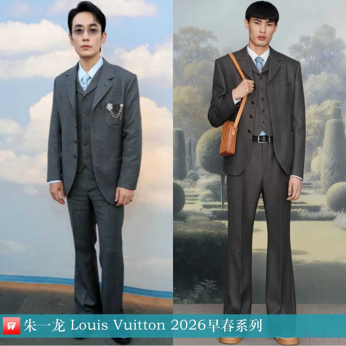 朱一龙,Vogue World好莱坞大秀。深灰色西服套装:Louis Vuitton 2026早春系列。