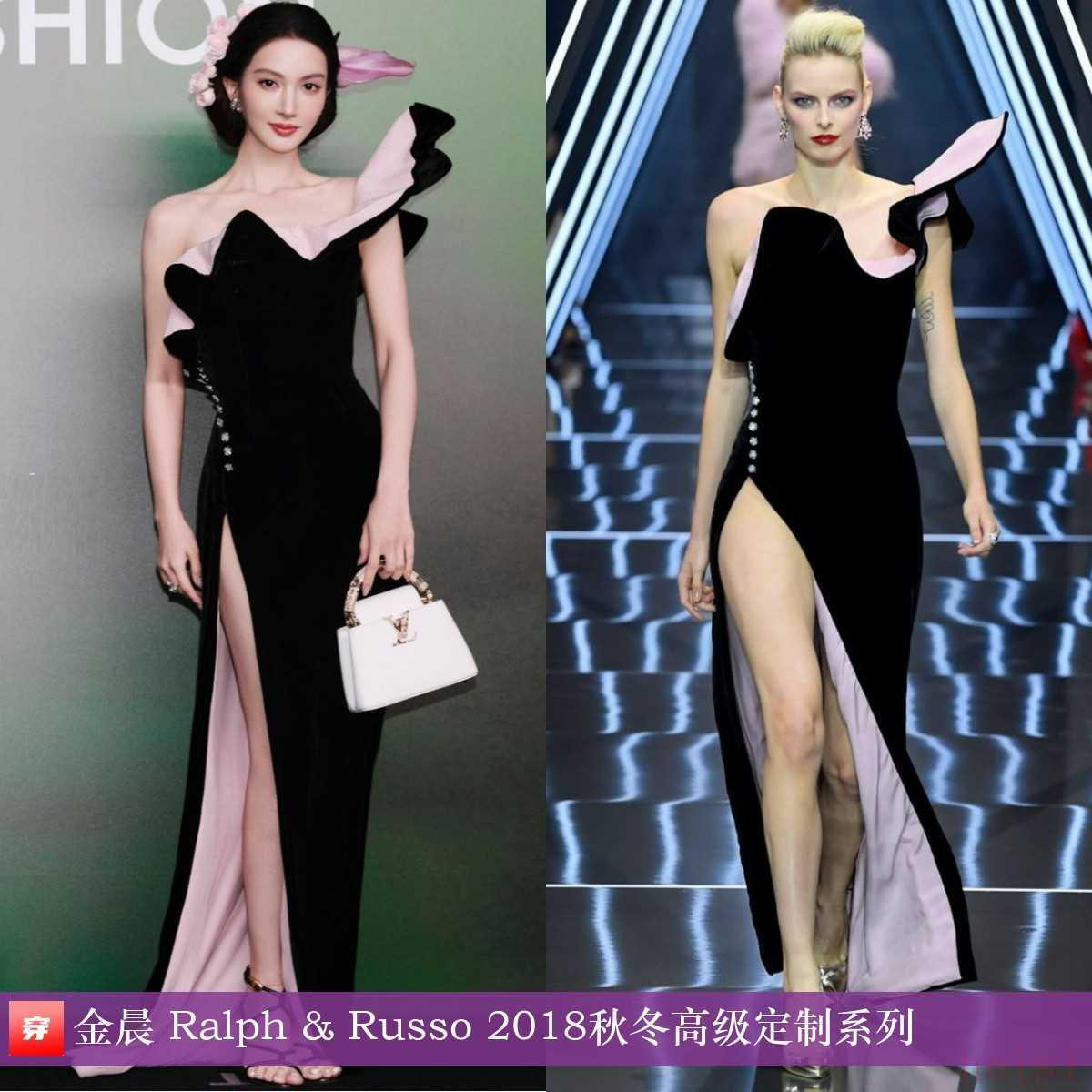 金晨,2025年VOGUE时尚之力盛会。不对称立体荷叶边高叉礼服:Ralph & Russo 2018秋冬高级定制系列。