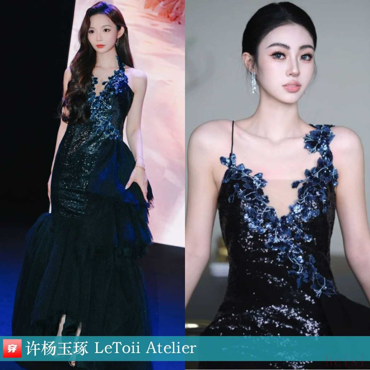 许杨玉琢,2026春夏上海时装周LeToii Atelier秀。蓝黑立体裁剪珠片礼服:LeToii Atelier。