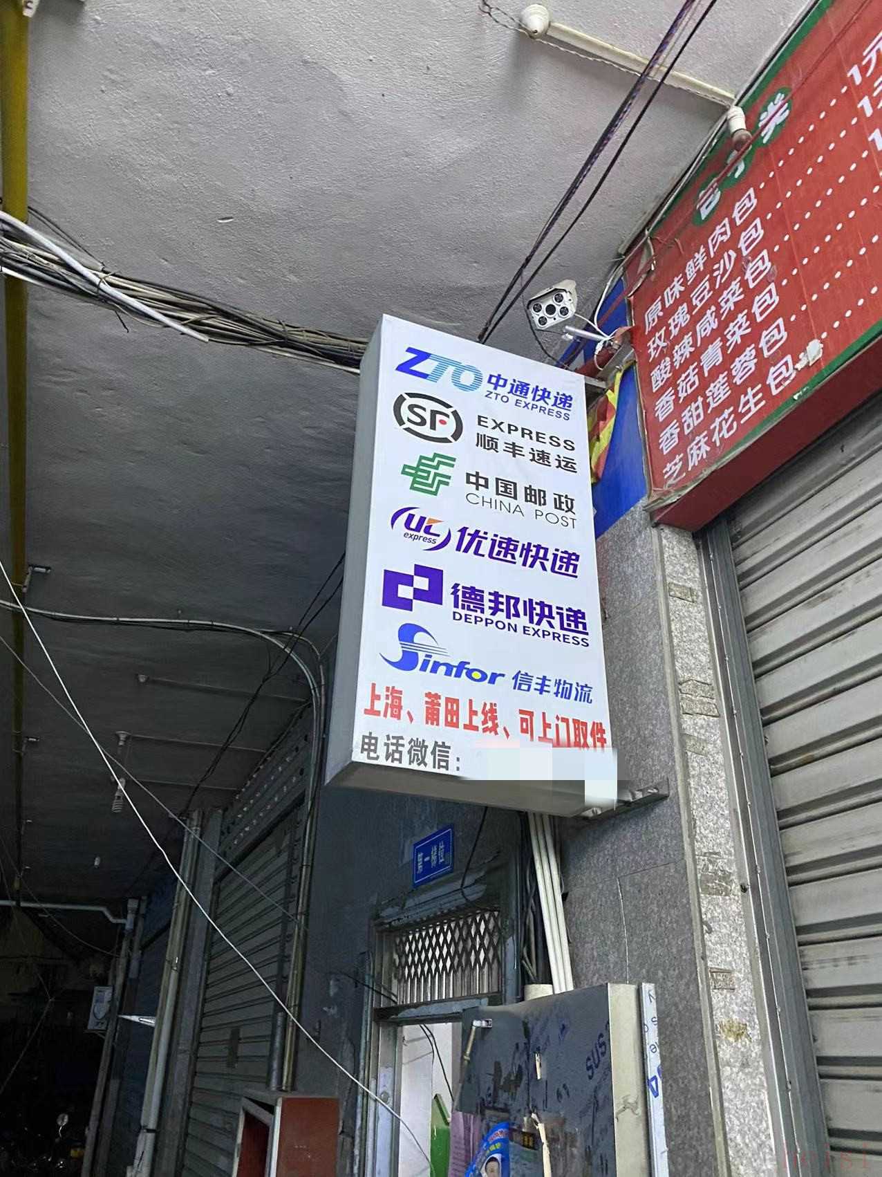 莆田街头,以前多个快递点曾公开挂出的“异地上线”服务已不见踪影。 澎湃新闻记者 吕新文 摄
