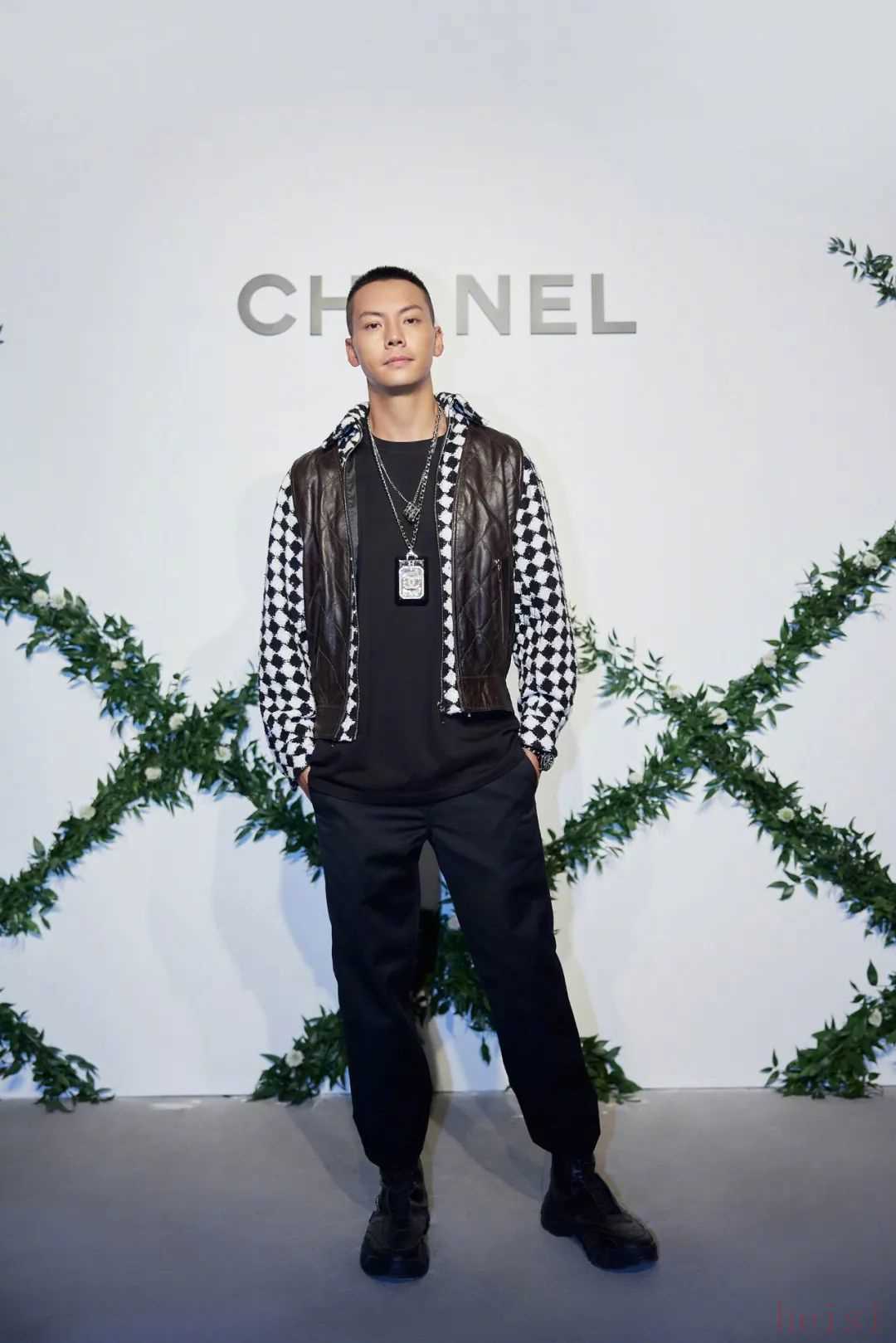 但没想到,有一天他竟然也翻车了。得承认,为了拍戏陈伟霆皮肤晒得更加黝黑,没有之前那么白皙,而身材也练得更加健壮,这里我们要尊重他作为演员的身份。而他这次出席 CHANEL 品牌活动上的 Look,我们先从廓形上来看,外套很明显小了,衬托得他的胸膛比较“紧迫”,叠戴的项链这时候也就看得累人,再加上格纹,整个上身“包裹”得臃肿。其次,由于黑白菱纹格与皮革都是容易显老气与土气的元素,所以对于皮肤偏黑的人来说是要谨慎考虑的,很不巧陈伟霆都犯了,远没有之前穿上 CHANEL 那样脱俗生动的优雅感受。