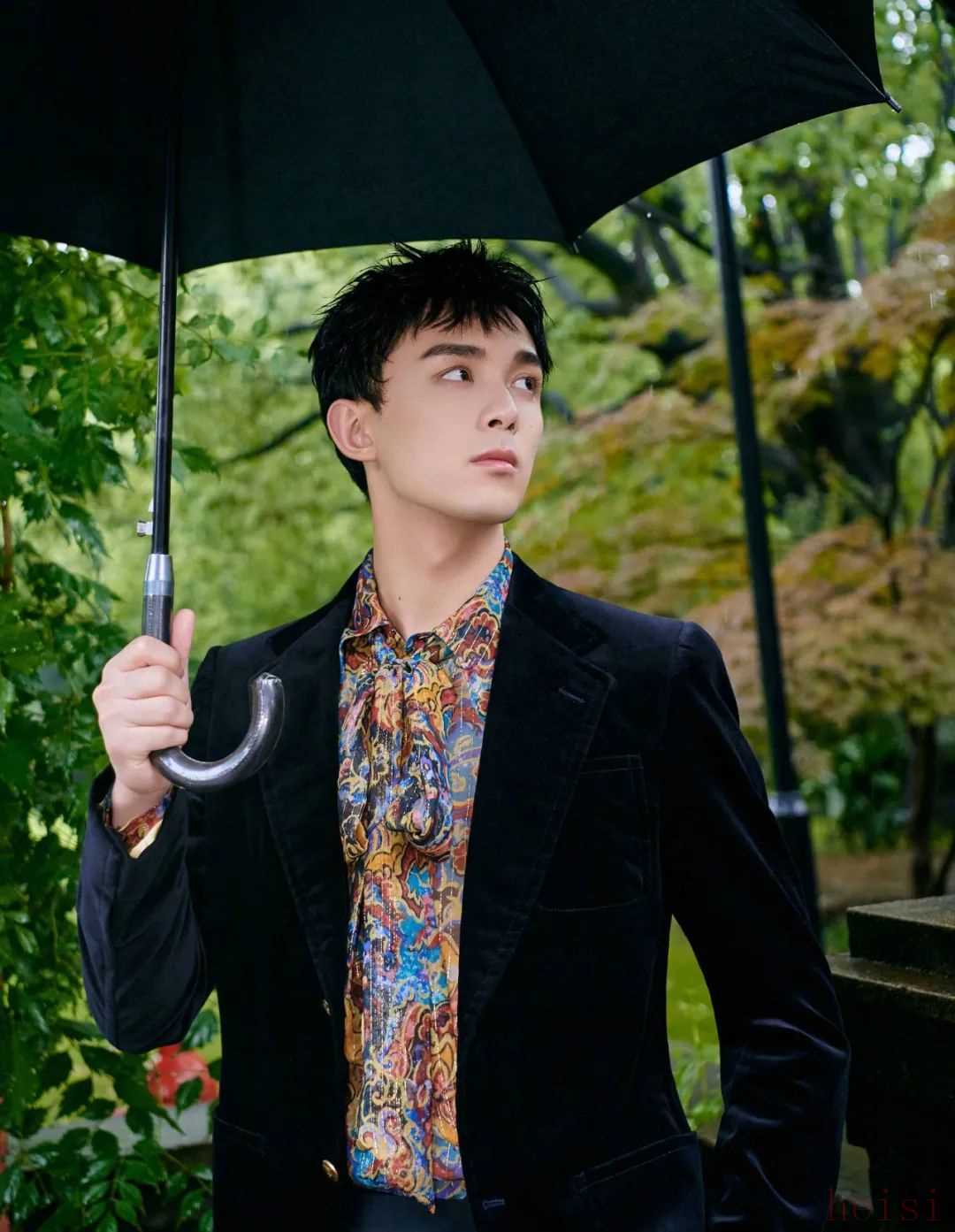 █ 丝绒西装与花衬衫下的吴磊不再是以前那个人们印象里的奶油小生,风格形象上有了深度和宽度,丝绒与印花都是十分复古的元素,让其清秀的气质不再单薄,以丝巾作为领型上的修饰,则更具有了一份典雅神秘的味道,犹如一位漫步庄园里的贵公子。