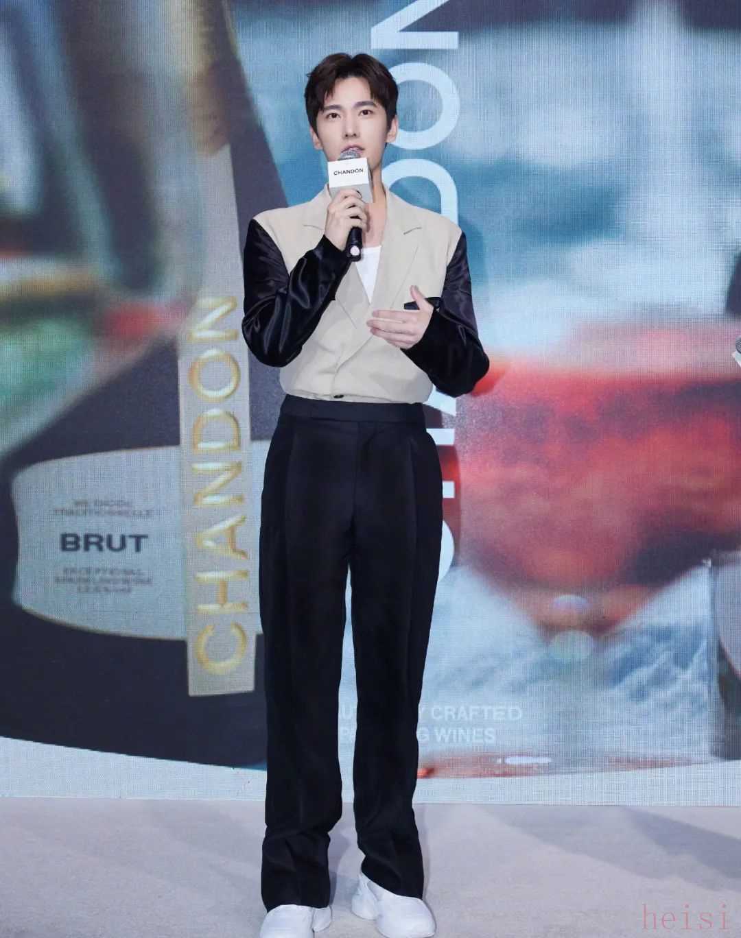 █ 最后一位是杨洋,他的西装来自 dunhill 的 2021 春夏系列,肩袖采用了缎面拼接的设计,其实看起来跟第一位陈伟霆的外套效果有点类似,这样光泽感更明显的质地,会有显老气的风险。
