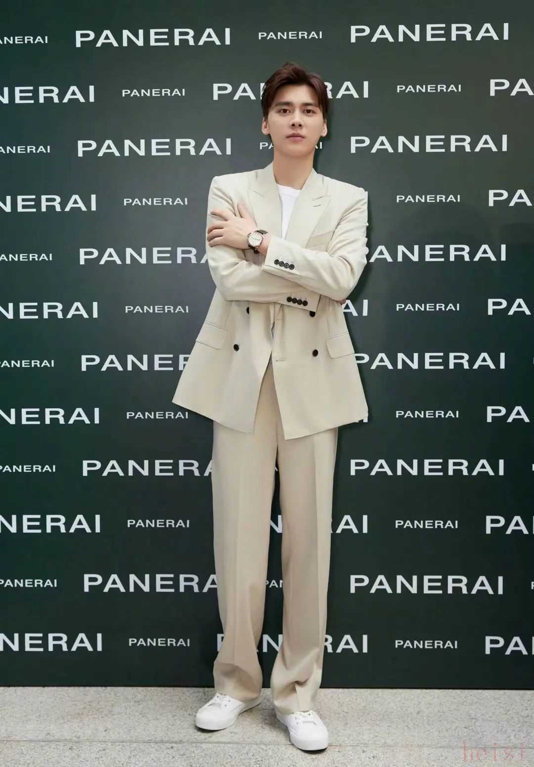 █ 李易峰身着双排扣西装出现在品牌活动上,虽然西装从垫肩、双扣到戗驳领无一不强调气势与权力,但米白颜色,内搭简单的白T恤,还有小白鞋,这些也都在观感上调和双排扣西装的威严感,风格板正也会温和,是比较耐看的一身。