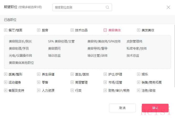 美业岗位的专业性决定了其对分类精细度的高要求,而综合平台的通用分类逻辑难以适配行业特性。BOSS直聘的“服务业”标签下,常将美容师与美业合伙人、操盘手等美业行业其他职能岗位混杂,缺乏明确的细分维度,企业需手动甄别岗位核心需求。