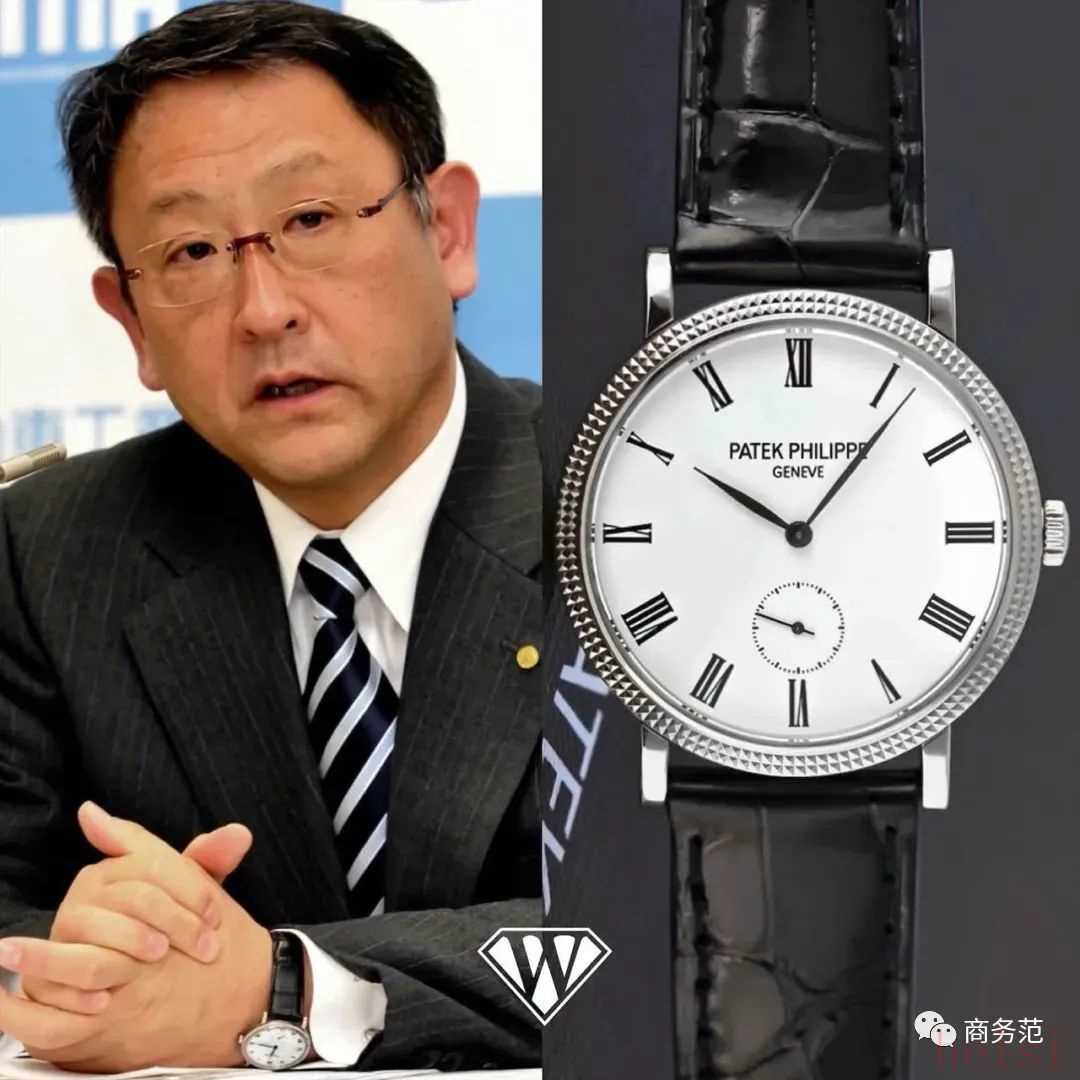 同样是日企老板的丰田汽车社长丰田章男,也喜欢这一类型腕表,他这枚是百达翡丽Calatrava系列,商务感比较强,适合搭配正装。