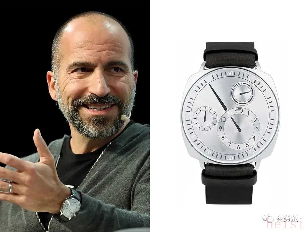Uber CEO达拉·科斯罗萨西选表品位就比较独特了,他戴过一块来自比利时小众品牌Ressence的Type 1 Squared腕表,设计没有独立的指针与表盘,蛮炫酷的,价格10万出头。