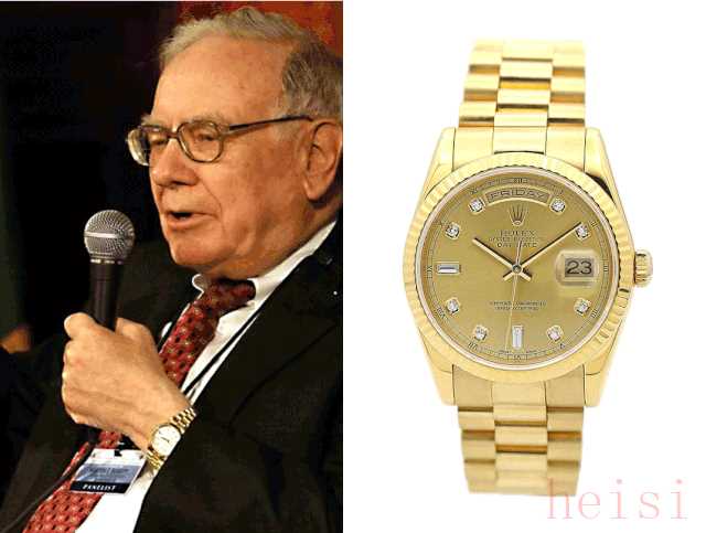 劳力士也是很多金融大佬喜爱的腕表品牌,巴菲特常戴的就是一款全金的劳力士星期日历型腕表,非常经典的款式。BP资本的前主席T. Boone Pickens和巴菲特戴的还是同款。