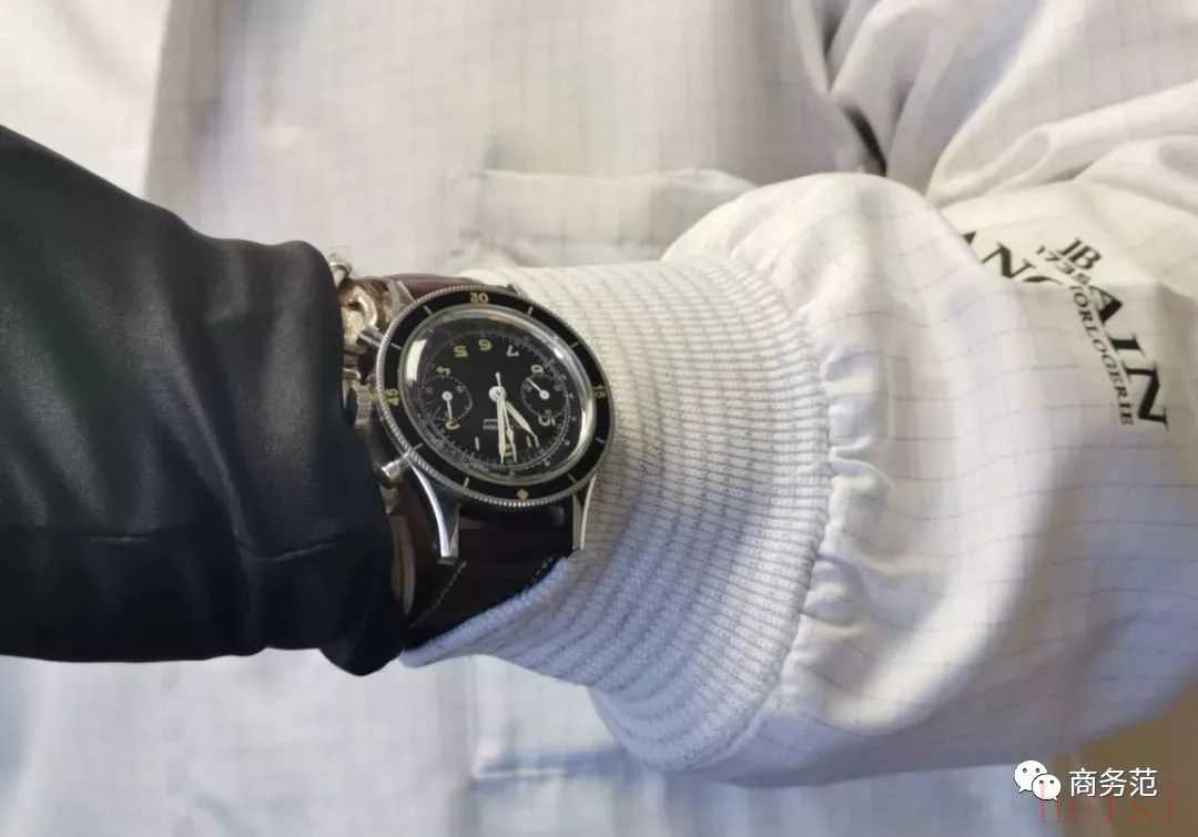 那天他佩戴的是一枚古董表。在二十世纪五十年代,宝珀曾基于五十噚为美国空军订制了12枚计时码表Air Command,戴在海耶克先生手上的就是其中一枚。