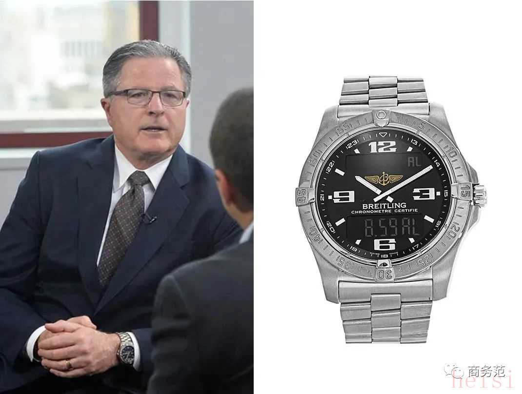 雪弗兰前CEO手上这枚腕表也比较大气运动,是百年灵的航天多功能腕表,表盘内还有电子显示屏,石英表电子表合二为一。