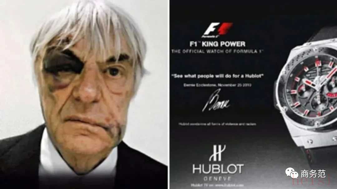 不过伯尼老爷子也不是吃素的,本来可以就此平息这件事,却用这张受伤的脸来帮宇舶打起了广告,广告语是:See what people will do for a Hublot(人们为了宇舶啥都干得出来) ,感觉对宇舶也蛮真爱的。
