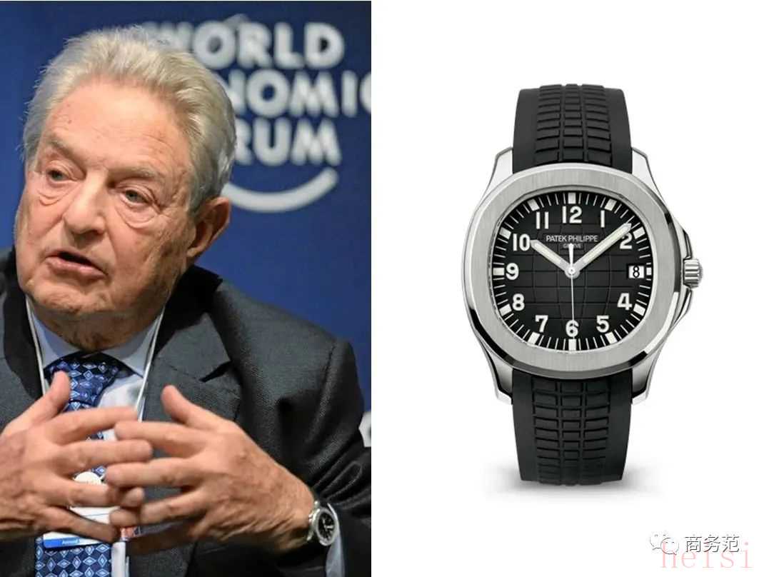 百达翡丽在金融圈相当受欢迎。索罗斯就常戴一款百达翡丽Aquanaut,黑色表盘搭配表带的款式,低调显贵。