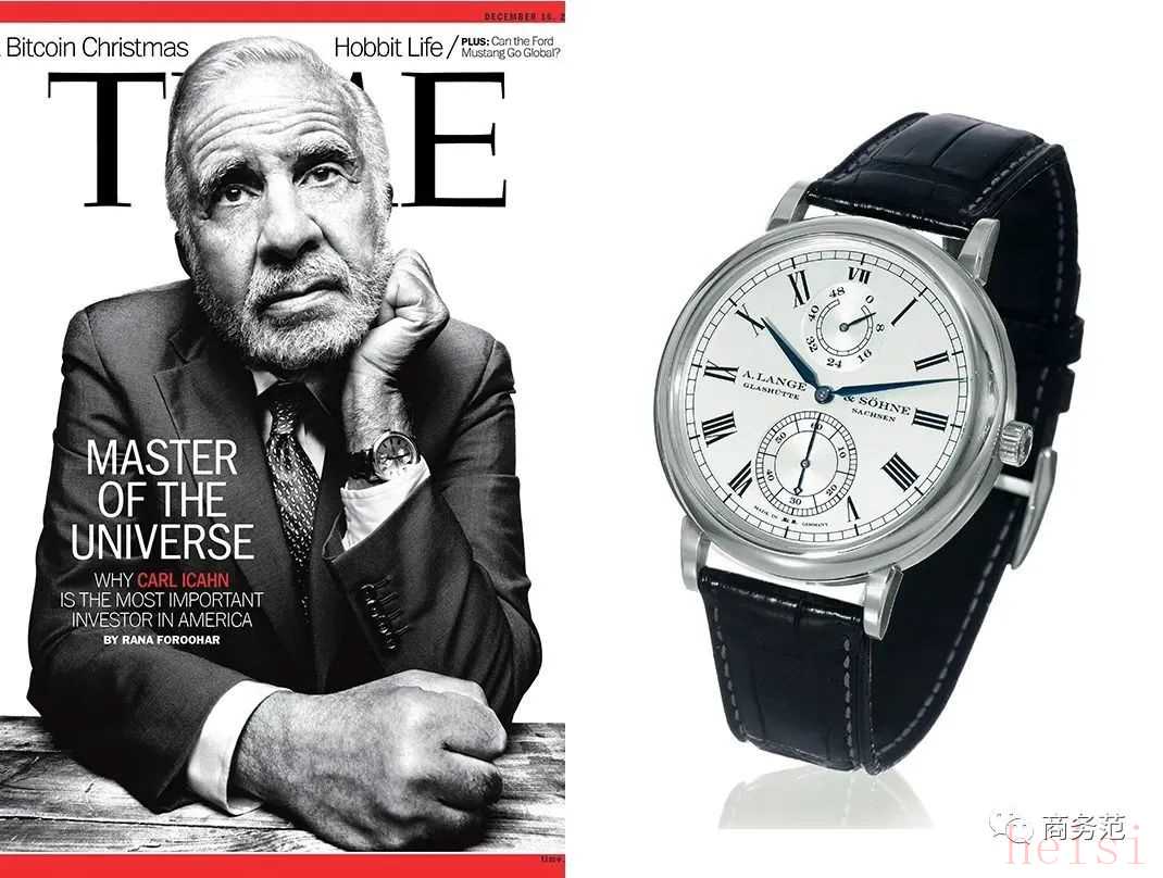 对冲大佬Carl Icahn爱戴德表朗格,之前上时代封面,戴的就是一块朗格的Grosse Langematik Gangreserve腕表,款式比较小众,还是纪念版的。