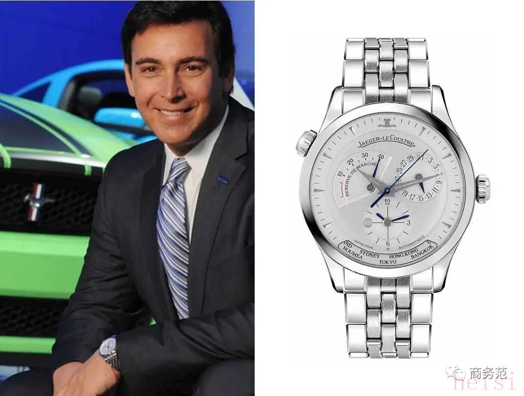福特前CEO Mark Fields,戴了一枚疑似积家大师系列地理学家款腕表,因为其不协调的小表盘设计,加上仿佛在咧嘴笑的时区显示窗口,有种小丑般的喜感。