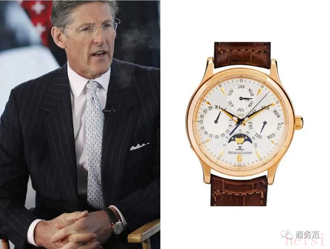 除了标配劳力士和百达翡丽,其他腕表大牌的低调商务款式也蛮受欢迎的,像花旗集团的CEO就常戴一块积家大师系列万年历,也是不抢眼的正装表款。